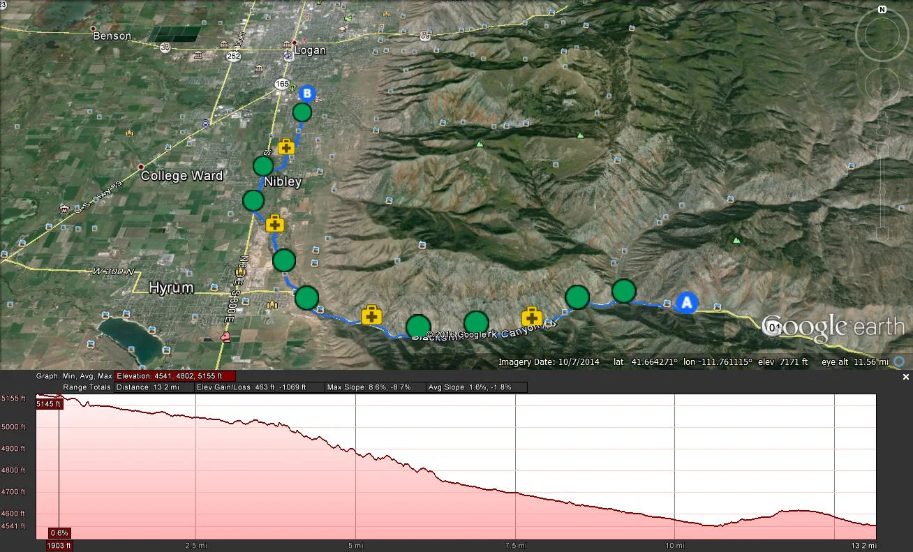 The course for the Top of Utah Half Marathon is part of the USATF Utah Road Racing Circuit. It starts 7 miles up Blacksmith Fork Canyon at the Hyrum Electrical Plant and finishes at the Providence Zollinger Park. As runners wind down the canyon, they find aid stations every 3 miles, run by local volunteers and organizations. Race course will be open for 3 1/2 hours. Wheelchair and hand-cycle divisions. Walkers may participate.
